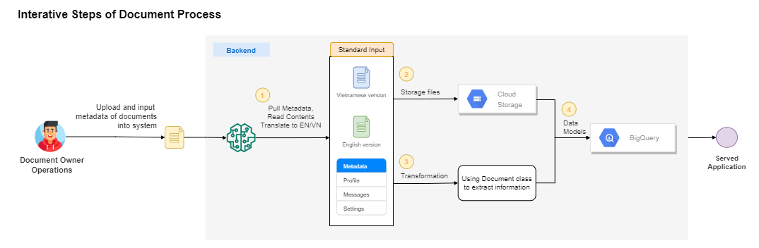 When document owners or operators publish a document into the system, the Backend then triggers the following four steps: