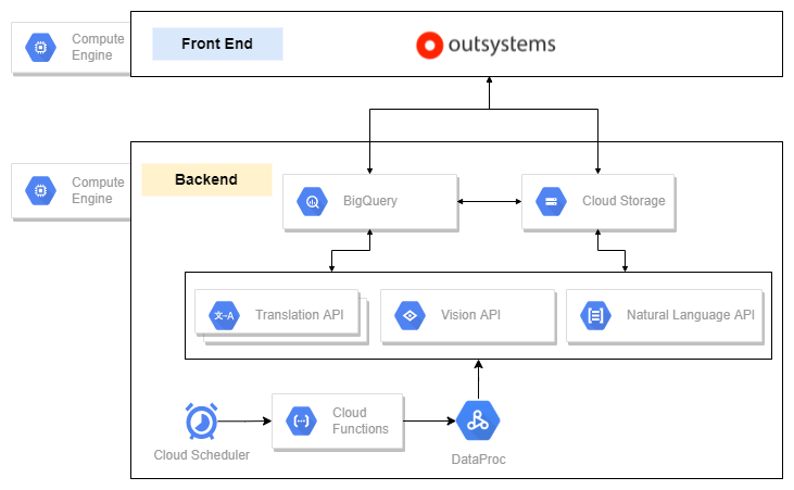 Then, we use low-code Outsystems to build Front End component that will pack our information and served it through the mobile application. We put Front End/Back End in different virtual machine instances (for securities purposes)