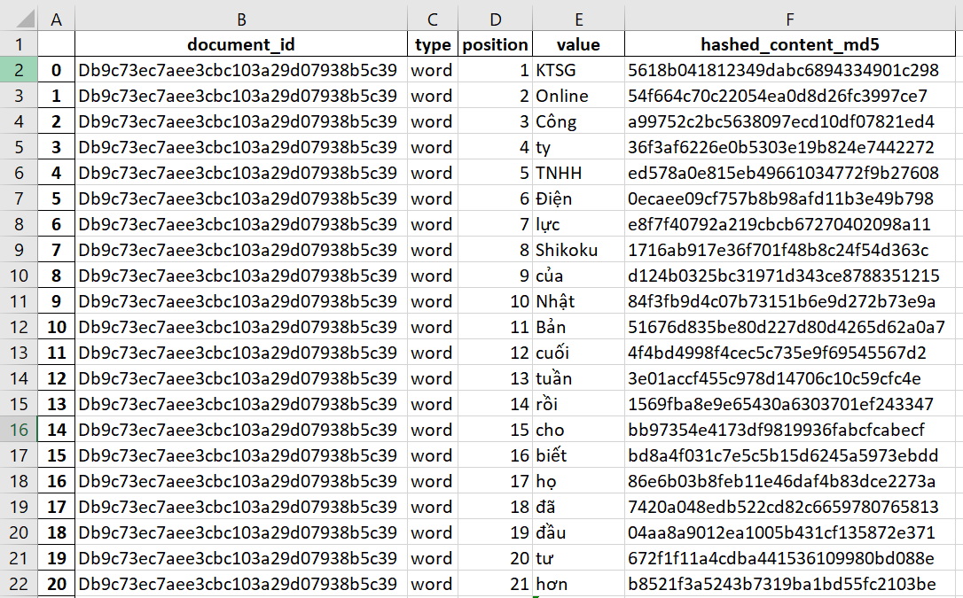 _extract_document | Extract Content | Based on the processed text, we parse the document into one dictionary paragraphs, sentences, words for both English and Vietnamese, return a dictionary of position and types relative | False |