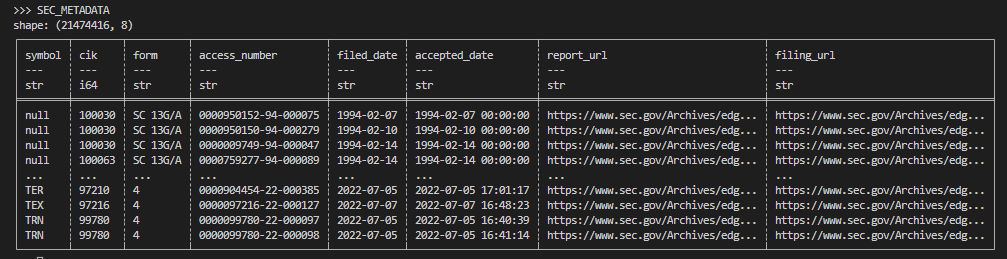 SEC Filling metadata has been published by FinnHub through Kaggle on website from 1994 to 2020